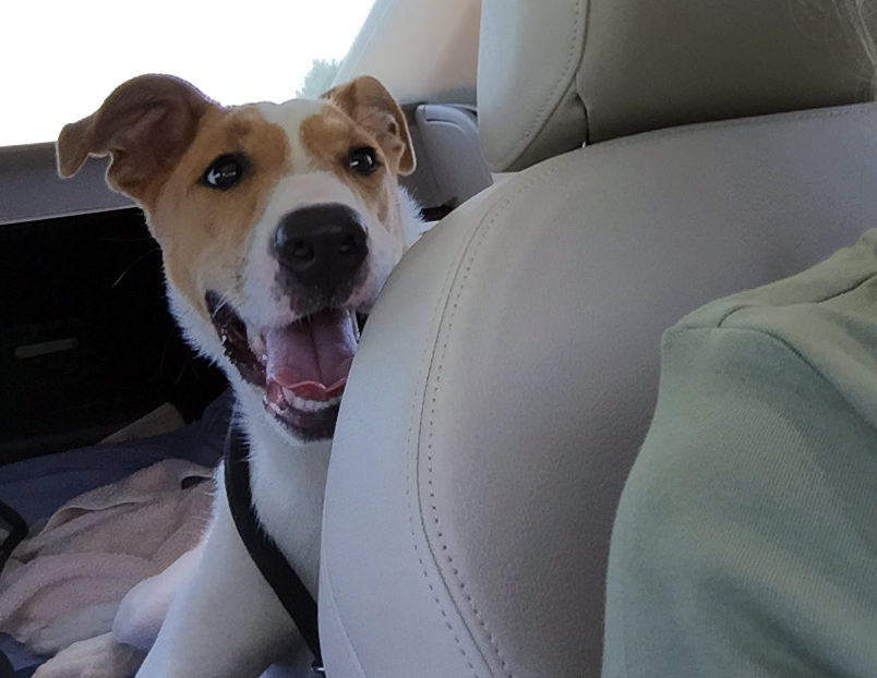 I began by looking at Facebook posts of dogs in shelters that were running out of time. There are so many high kill shelters so that’s where I target. Eventually I settled on a litter of 6-month-old puppies that were kind of German Shepherd/Husky-ish and I was having a difficult time choosing between a brother and sister. I drove the three hours to the place, warning my husband in advance that I probably will come back with both of them. When I arrived and met them I thought they were very sweet but also very subdued, even in the outdoor play area. But also we just didn’t connect. The shelter director informed me that a local rescue group had just committed to pulling the whole litter so if I didn’t take them they would still be okay. When I told her that I was really looking for a playmate for Stella she offered to show me a 7-month-old female smooth-coat Collie mix who had been dumped the week before because she had “too much energy”. A minute later her assistant burst through the door with this crazy thing that was more thoroughbred than dog.
