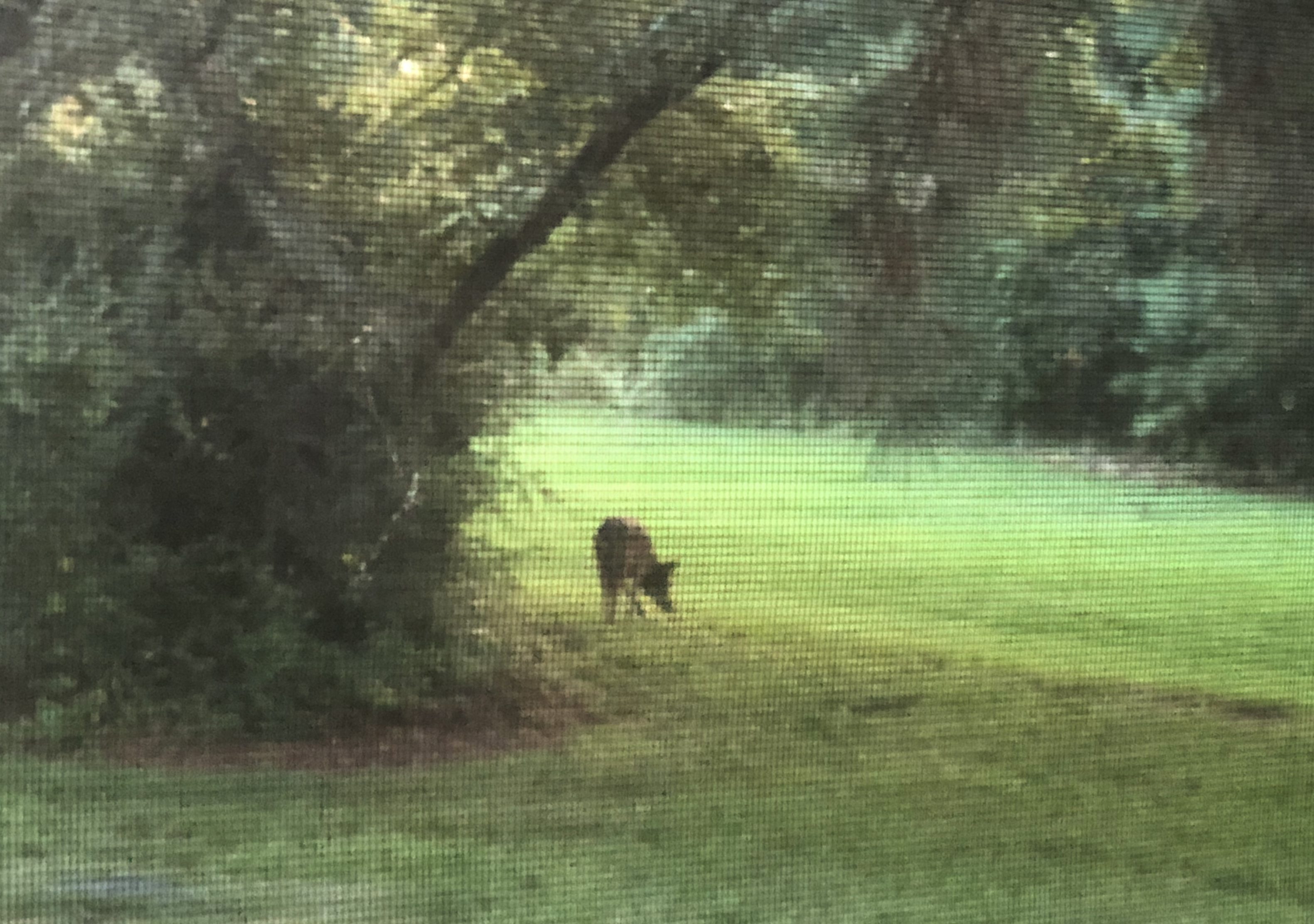 I live on 5 acres, partially wooded. On any given day, I’ll see possums, snakes, birds of all kinds, deer, rabbits, turtles, you get the picture. And once in a while, especially lately, coyotes. It used to be that I would only hear them at night, that scary yipping and screaming they do off in the distance. And whenever that happens, I immediately think of a baby deer being ripped to shreds, chunks being tossed into the air with glee. I’ve read that these cries and howls don’t necessarily indicate a bloody celebration and that it’s typically far fewer coyotes than it sounds like. But it’s still chilling.