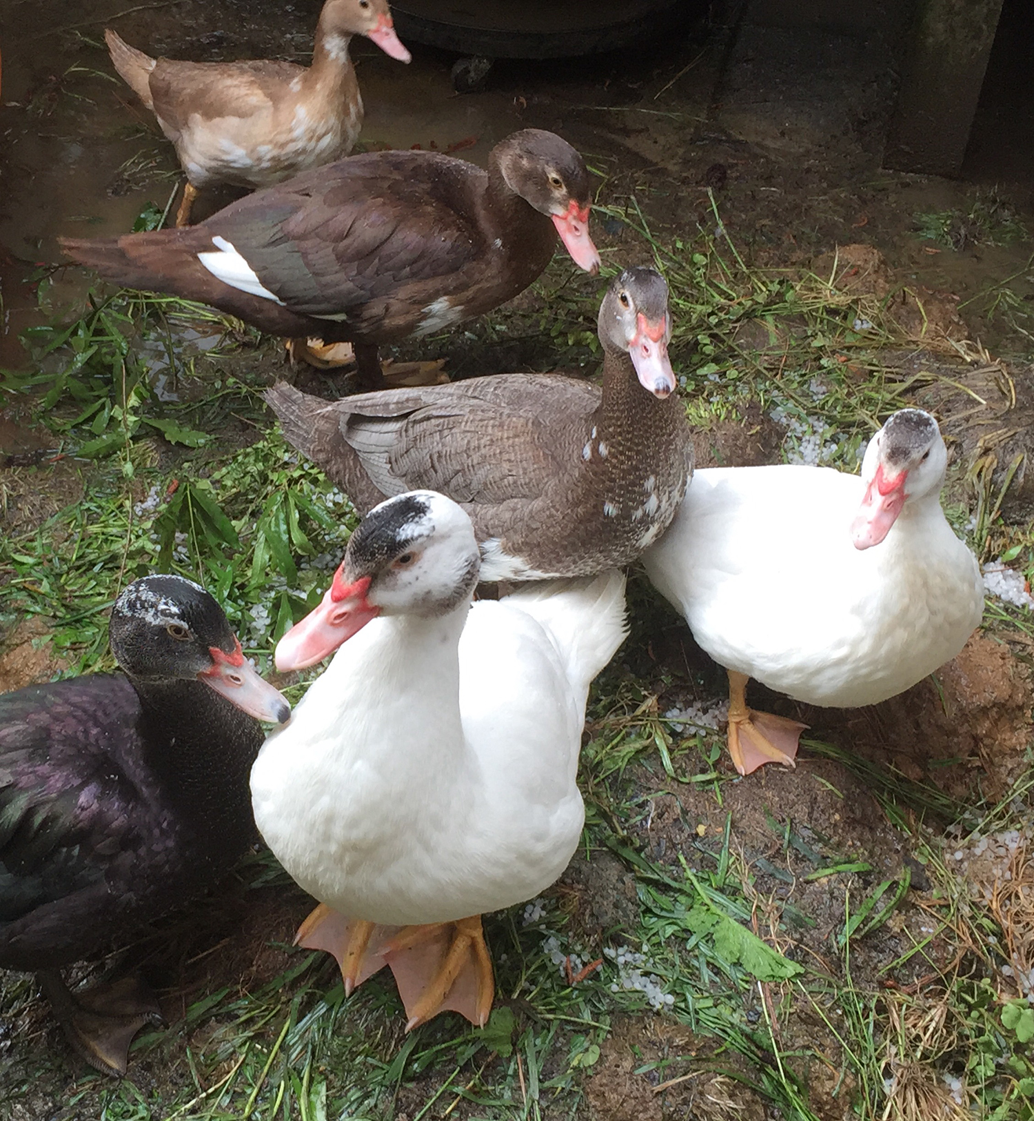 On a Sunday morning in the spring of 2015, with Bloody Marys in hand, we noticed some strange large birds perched in one of our oak trees. It turned out they were Muscovy ducks, who knew ducks perched in trees? Anyway, we fed them, and they stayed. And multiplied. A lot. After a few years of trying to take care of countless clutches of these ducks, we now have ONE. The only reason we still have even this one is because he’s handicapped, so we built him a house where he’s safe. The rest eventually became, you guessed it, coyote food.