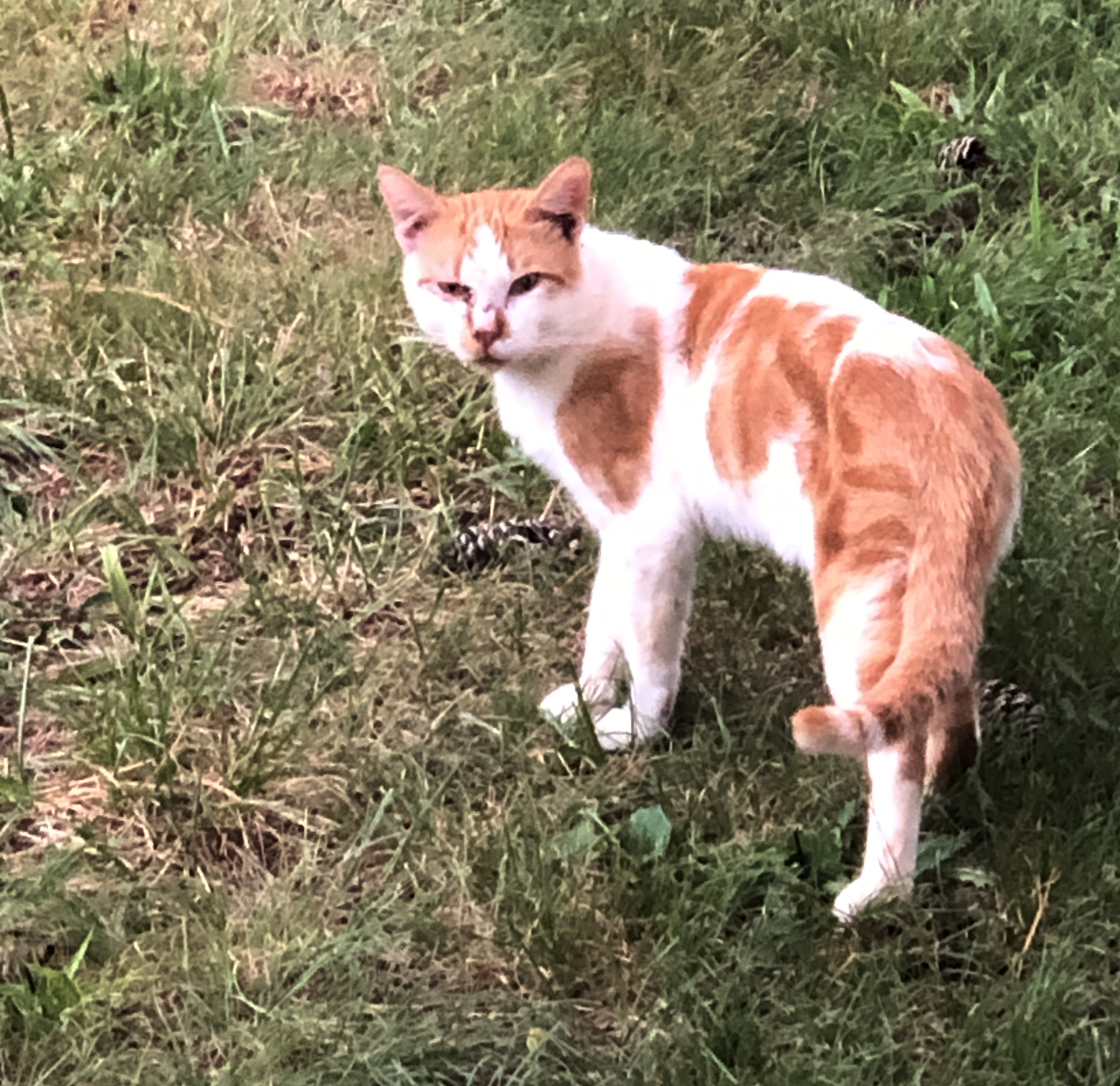 Recently, we saw Tim Tim, the feral cat that comes to eat here twice a day, race past the window. Then we saw the big coyote in hot pursuit. We ran outside, making noise to scare him off. He stood for a few seconds, looking up with an amused smile on his face, before he dashed off. Tim Tim had climbed a tree, clever boy, and the coyote seemed outwitted. But I’ll never forget his expression, just the same as a dog fully engaged in a fun activity. The disconnect for me is the combining obvious danger of a coyote and wanting these animals I care for to be safe with the joyful dog I witnessed at that moment. Days later, at 2:30 in the afternoon, I saw another one just passing through the front yard. He looked like a large adolescent, goofy expression on his face.